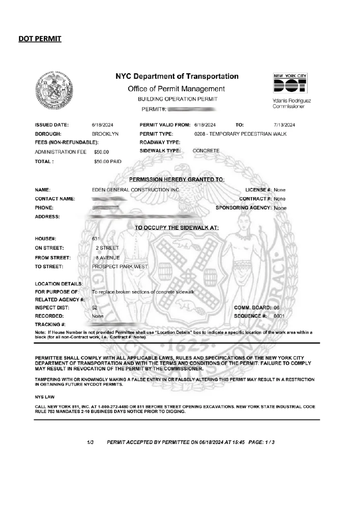 Our team managed all permits for the client. We first secured the approval from the Landmarks Preservation Commission. After that approval, we applied for the Department of Transportation permit. These permits ensured that the work met city standards. They also confirmed the safety and legality of the project.