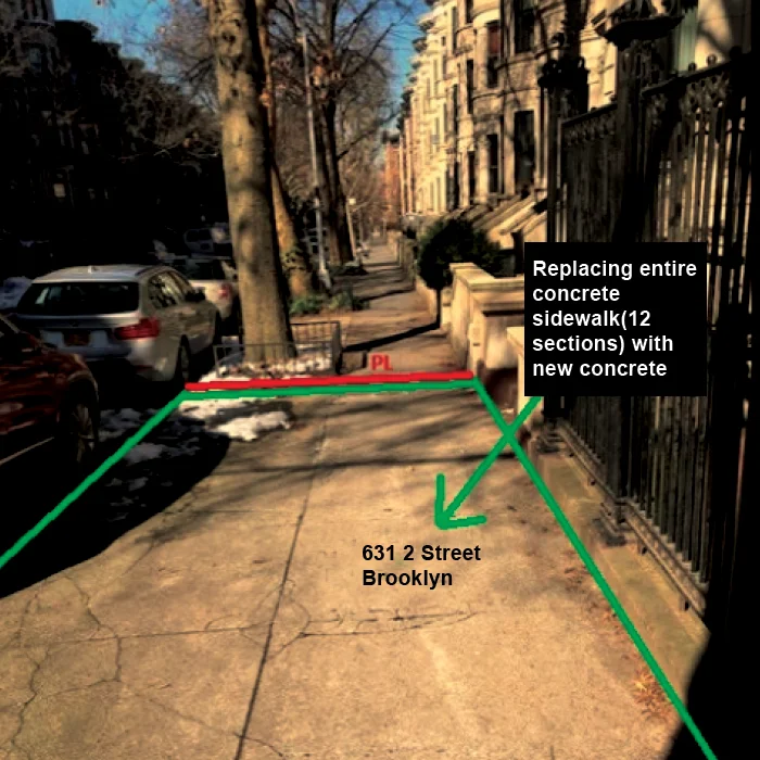 The client, George R. Fearon, owns a home located at 631 2 Street in Brooklyn, New York. The sidewalk in front of the property showed severe wear. The client needed a long lasting solution that would remove the hazard and improve the safety of visitors and pedestrians.